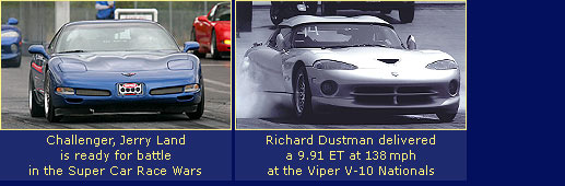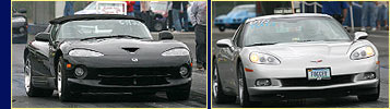 early lead in the 2006 Corvette, but the top end charge of the Viper gave Richardson the win. Phillips demonstrated great sportsmanship, in this naturally aspirated race, by staying off the N20 button, which when activated during testing improved the ET of the otherwise stock C6 Corvette by 1.7 seconds.